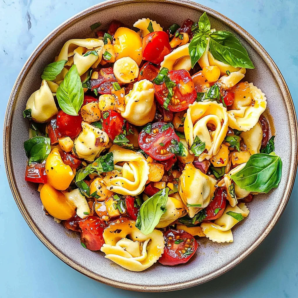 When it comes to reheating, warm the tortellini gently in a pan over medium heat for about 5 minutes until heated through; avoid microwaving as it can make them mushy. The vegetables should be enjoyed fresh, so skip reheating them altogether. Instead, toss them into the salad cold right before serving to preserve their crunch. If you do need to warm the dressing, heat it separately on low for about 2 minutes on the stove; microwaving it can lead to undesirable changes in texture.