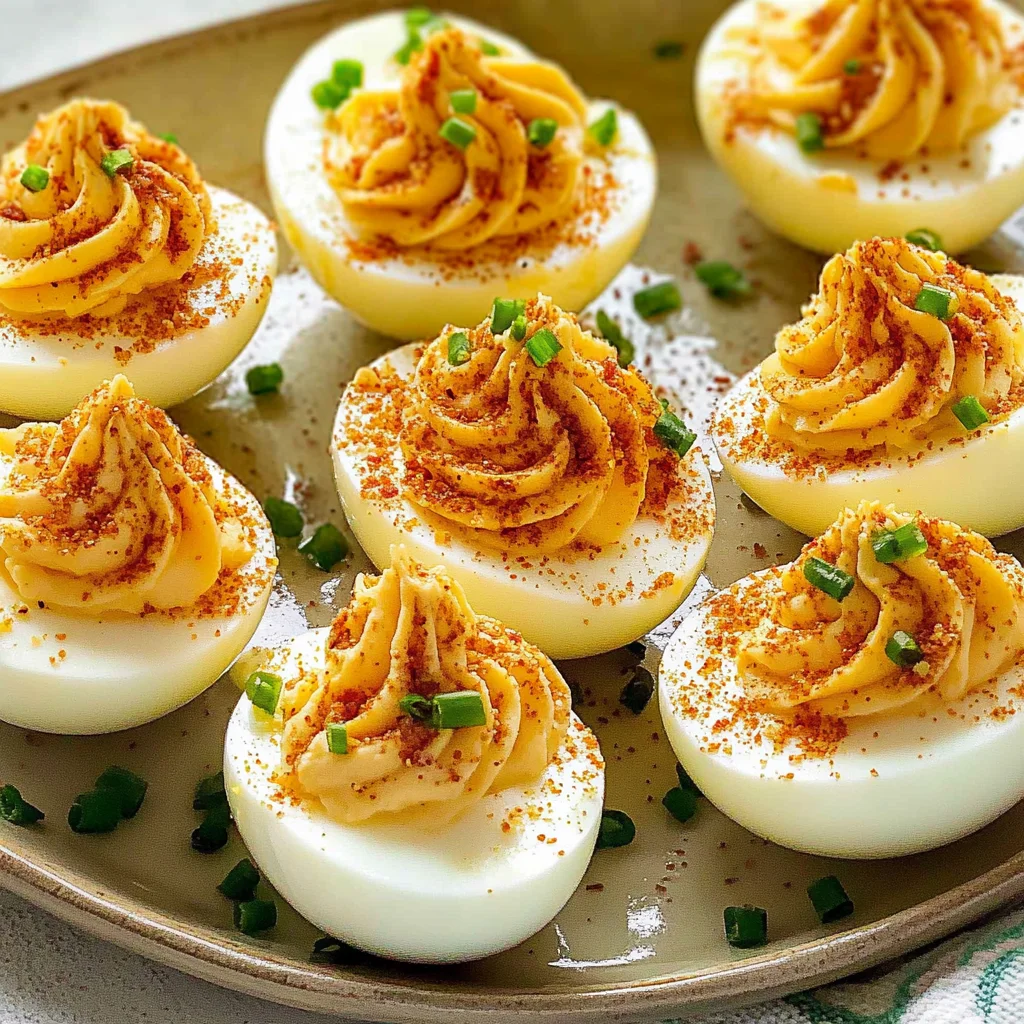 Roasted Brussels Sprouts with Balsamic Reduction: These sprouts are seasoned simply with olive oil, salt, and pepper before roasting until crispy, then finished with a drizzle of balsamic reduction for sweetness. They provide an earthy flavor that harmonizes with the bacon in the deviled eggs while contributing fiber and vitamins C and K. This is always a hit at family gatherings; everyone loves how they get those crunchy edges!