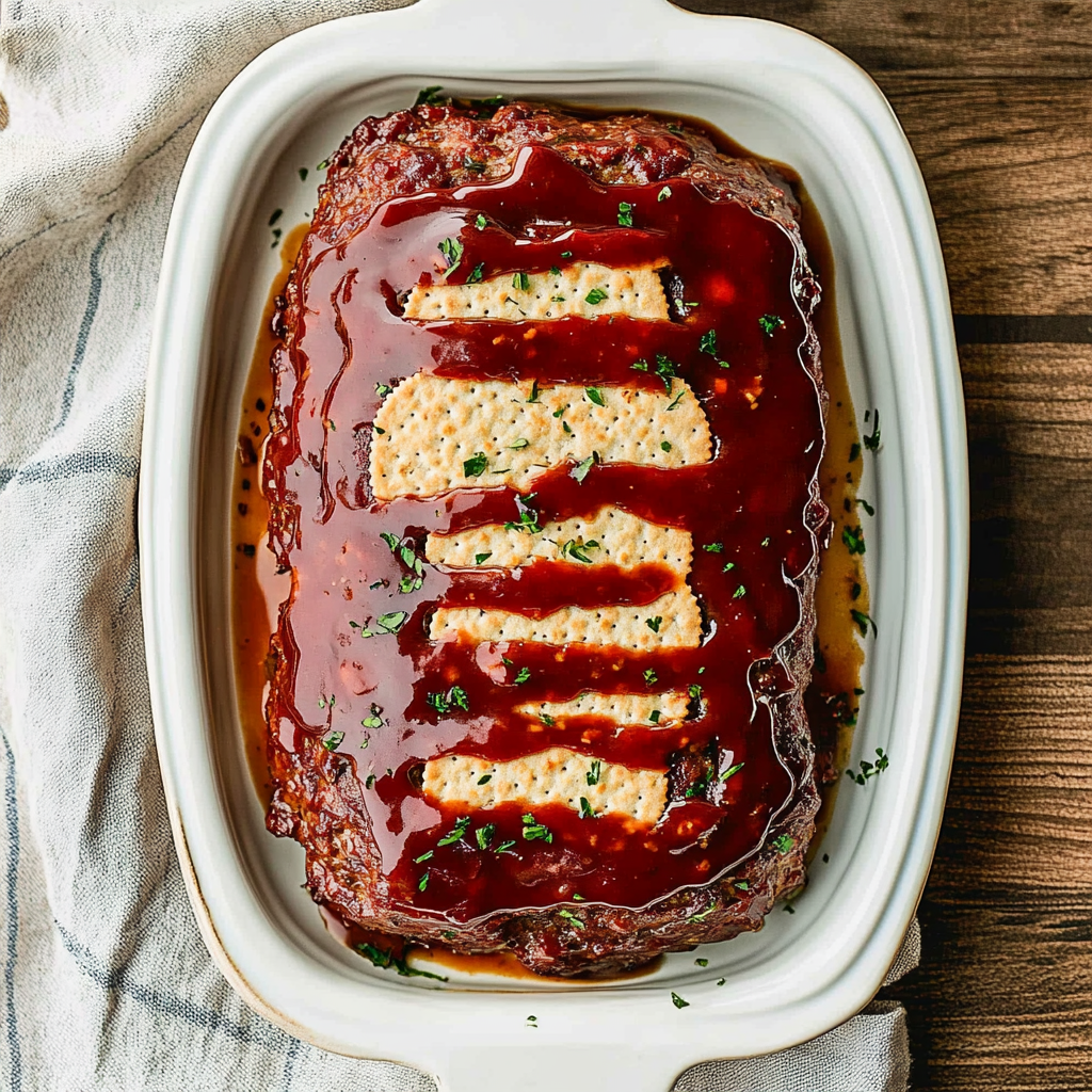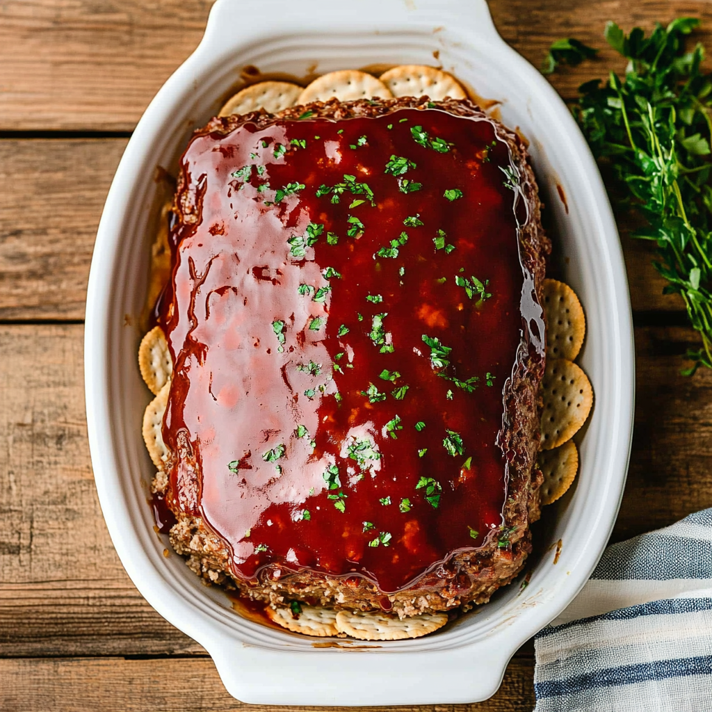 A comforting and classic meatloaf recipe featuring crushed crackers for added texture and flavor.
